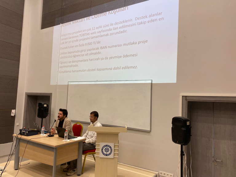 Üniversitemiz öğrencilerinin TÜBİTAK proje yazma deneyimlerinin geliştirilmesi ve bilimsel projelere katılımlarının teşvik edilmesi amacıyla 23 Ekim 2025 tarihinde Yeşilyurt Yerleşkemizde Sosyal ve Beşeri Bilimler Fakültesi ve Sanat Tasarım ve Mimarlık Fakültesi öğrencilerimize yönelik "TÜBİTAK 2209-A/B Öğrenci Araştırma Projeleri Hazırlama Eğitimi & Atölye" etkinliği düzenlenmiştir.