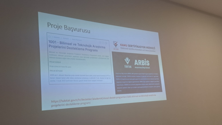 Üniversitemiz Araştırma Koordinatörlüğü tarafından 18 Şubat 2026 tarihinde Battalgazi Yerleşkesi Arslantepe Konferans Salonunda ve Yeşilyurt Yerleşkesi MYO Toplantı salonunda “TÜBİTAK 1001 Proje Yazma Deneyim Paylaşımı” etkinliği gerçekleştirildi. Yeşilyurt Kampüsünde Rektör Yardımcısı Prof. Dr. Orhan GÜNDÜZ’ün moderatörlüğünde, Mühendislik ve Doğa Bilimleri Fakültesi’nden Doç. Dr. Gürkan KAVURAN ve Doç.Dr. Bedriye Seda KURŞUN AKTAR, Sanat Tasarım ve Mimarlık Fakültesinden Doç.Dr. Ebru DOĞAN; Battalgazi Yerleşkesinde Ziraat Fakültesinde Prof. Dr. Nihat TURSUN ve Tıp Fakültesi'nden Doç. Dr. Mehmet YABAŞ hocalarımız, TÜBİTAK 1001 proje başvuruları hakkında genel bilginin yanı sıra proje yazımı ve proje yönetiminde dikkat edilmesi gereken hususlar ile projelerin değerlendirme süreçlerinde yaşadıkları tecrübeleri paylaştılar. 30 araştırmacının dinleyici olarak katıldığı etkinlik, katılımcıların sorularının yanıtlandığı soru-cevap bölümüyle etkinlik sona erdi.