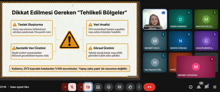 Saat 21.00’de başlayan webinarda, yapay zekânın yalnızca bir yardımcı araç değil, araştırma metodolojilerini kökten değiştiren bir unsur olduğu vurgulandı. Doç. Dr. İnceoğlu, özellikle şu başlıklar üzerinde durdu:
